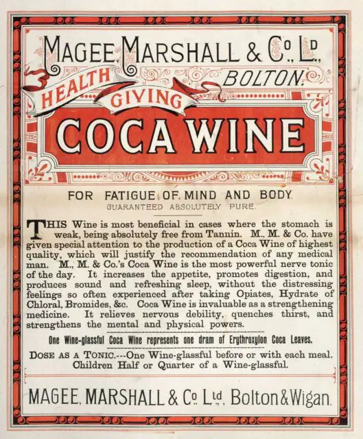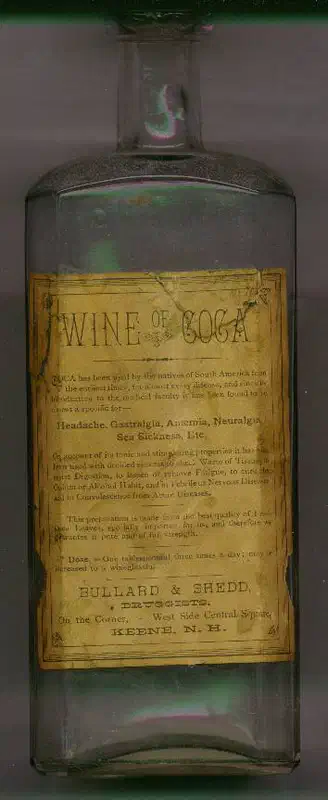 El WINE OF COCA elaborado por BULLARD & SHEDD en Keene (New Hampshire, EE. UU.) se postulaba como eficaz curando el “dolor de cabeza, la gastralgia, anemia, neuralgia y la enfermedad del mar”. También era recomendado para curar el “hábito del opio o del alcohol”.