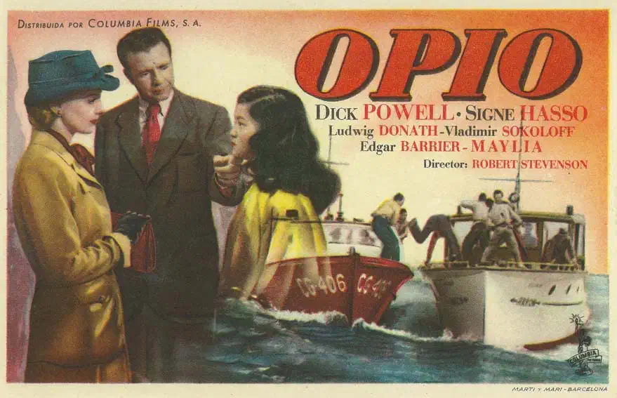 Curiosamente, así como la atención de la prensa por los paraísos artificiales decreció notablemente durante este período, el cine de la época, en cambio, explotó la temática hasta la saciedad. Incluso la filmografía española, sometida a una férrea censura previa, está plagada de títulos que recogen distintos aspectos del tráfico y consumo de drogas: Domingo de Carnaval (1945) y La ironía del dinero (1954), de Edgar Neville; Apartado de Correos 1001 (1950), de Julio Salvador; María Dolores (1952), de José Mª Elorrieta; Ha desaparecido un pasajero (1953), de Alejandro Perla; Sitiados en la ciudad (1954), de Miguel Lluch; Miedo (1955-56), de León Klimovsky; Sendas marcadas (1957), de Juan Bosch; Un hombre en la red (1957), de Lelio Luttazzi; La ruta de los narcóticos (1962), de José Mª Forn; El salario del crimen (1964), de Julio Buchs…