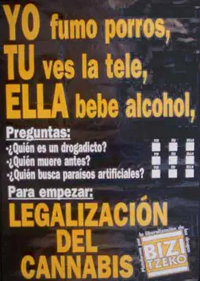 • Las organizaciones armadas como ETA, que con su discurso político y sus atentados, hacen suyos los planteamientos prohibicionistas, criminalizando a quienes venden drogas ilegales y legitimando la represión del Estado.